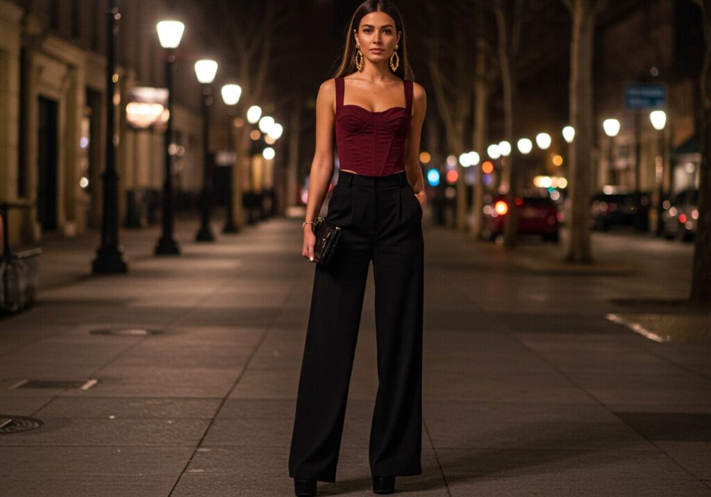 2. Corset Top and Wide-Leg Pants