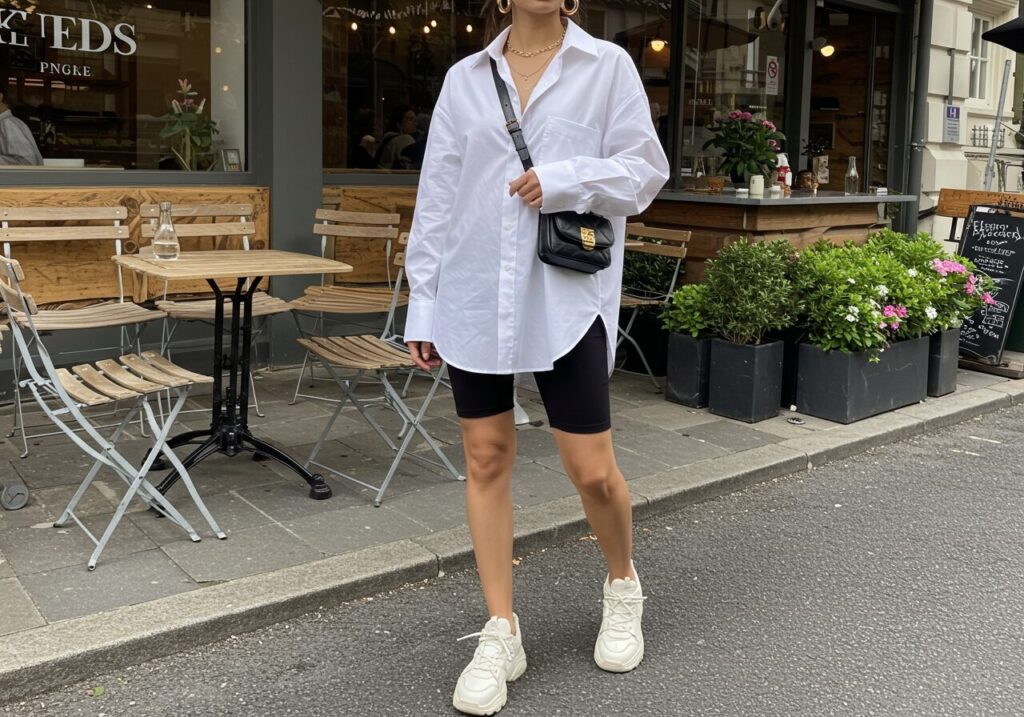 8. Oversized Button-Down and Biker Shorts