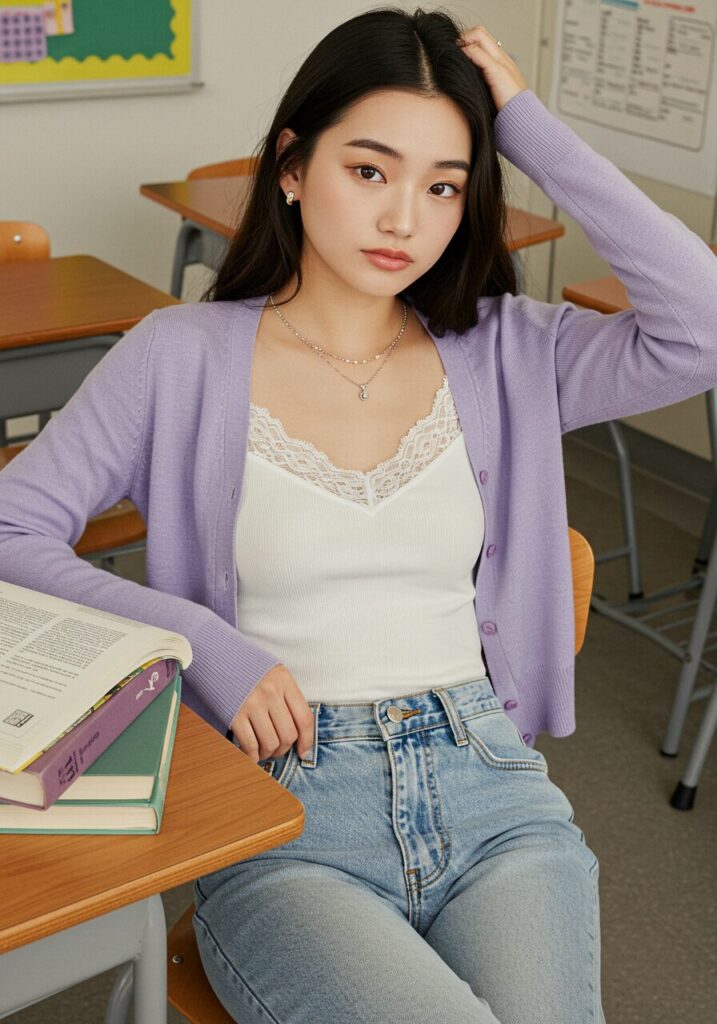 The layering allows you to adjust your comfort level throughout the day. The feminine details of the camisole add a special touch while the cardigan keeps everything school-appropriate.