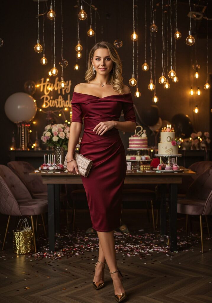 Pair it with statement jewelry and your favorite heels. A bold red lip adds that perfect birthday glamour touch that photographs beautifully.