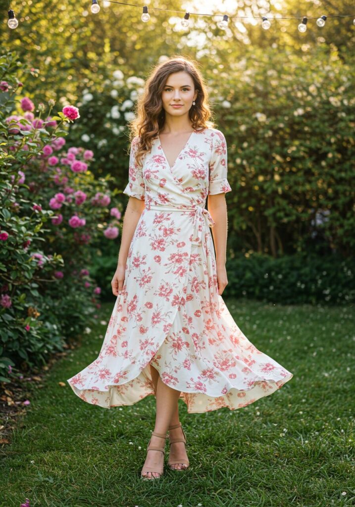 A floral wrap dress brings feminine charm and romantic elegance to your birthday celebration. This style is universally flattering and perfect for garden parties or brunch celebrations.