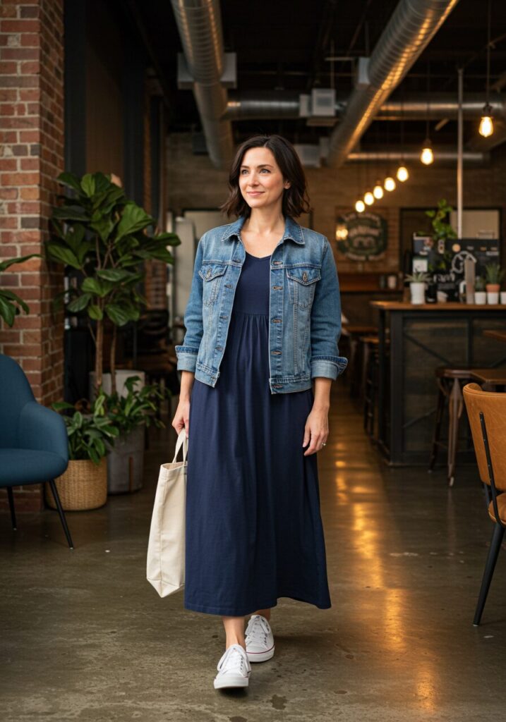 18. The Maxi Dress with Denim Jacket Casual Friday