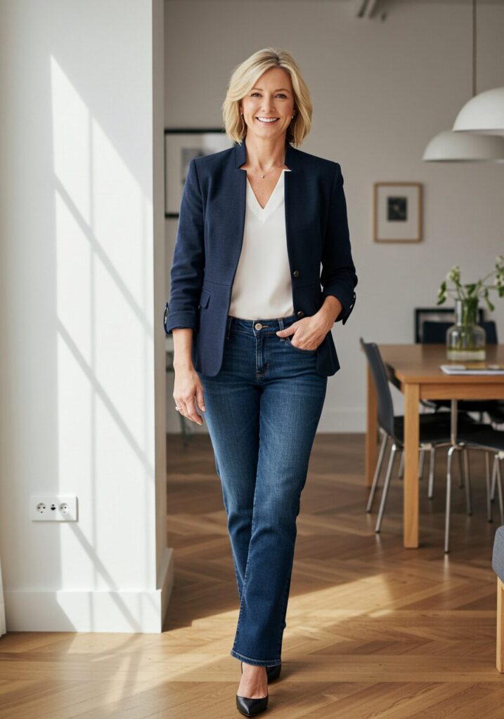 1. Classic Blazer and Dark Jeans Combo