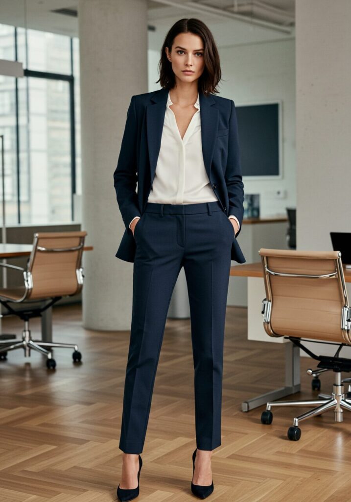 Choose a blazer in a neutral color like navy, charcoal, or camel. Pair it with matching or complementary trousers in a similar tone. The key is ensuring both pieces fit perfectly – not too tight, not too loose.