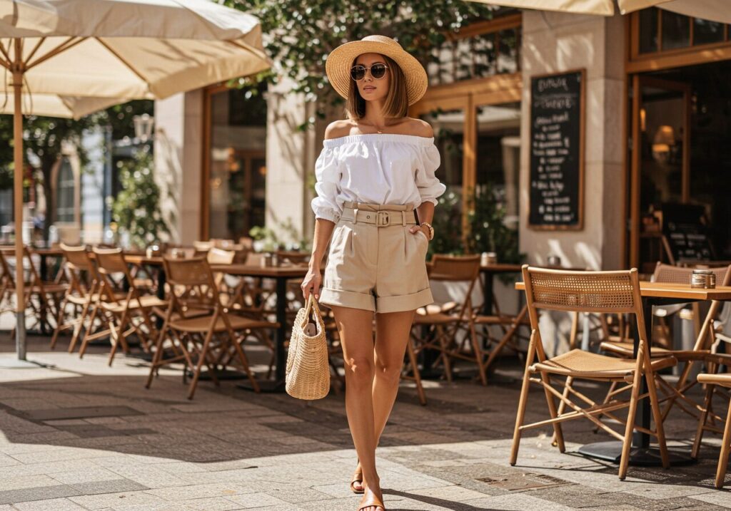 For warm-weather casual dates, elevate your shorts game with stylish high-waisted tailored shorts paired with a tucked-in blouse or elegant off-shoulder top. This outfit strikes the perfect balance between relaxed and put-together, ideal for outdoor activities, casual brunches, or daytime adventures with your date.