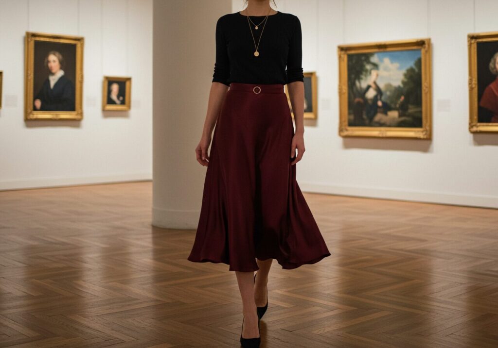 Balance proportions by pairing a fuller skirt with a fitted top, or contrast a pencil midi with a slightly oversized blouse tucked in at the waist. Complete the ensemble with kitten heels, strappy sandals, or pointed flats depending on your comfort level.