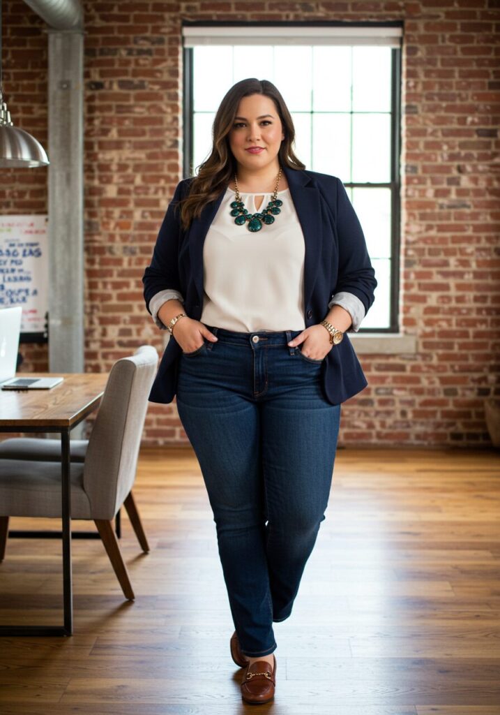 Dark jeans taught me that comfort and professionalism can coexist. They’re perfect for casual Friday or creative work environments.
