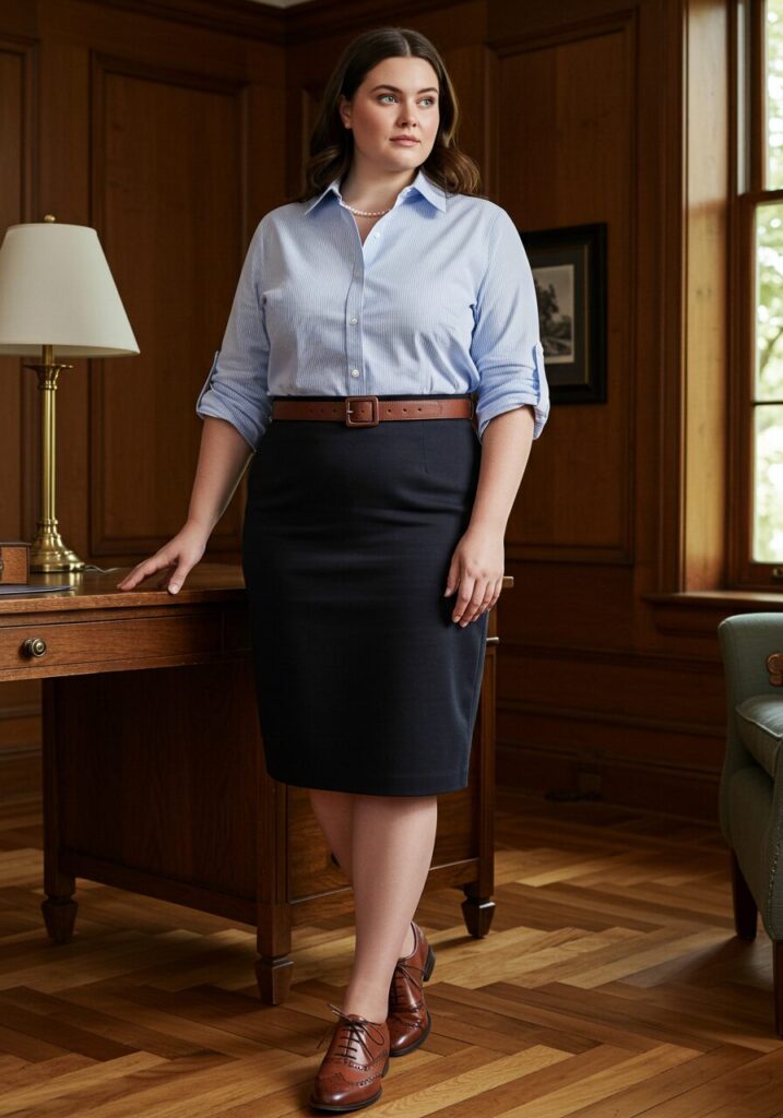 Add a statement belt to define your waist and create visual interest. Choose comfortable yet professional footwear that you can wear all day.