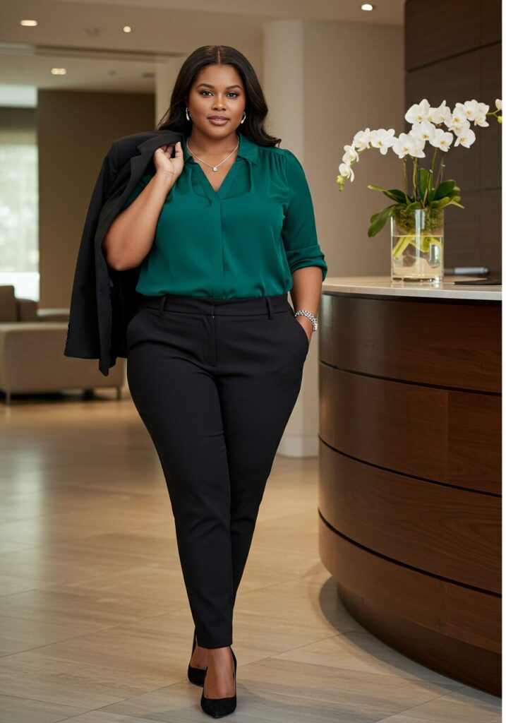 Creating a professional wardrobe as a plus-size woman is about finding pieces that make you feel confident and comfortable while maintaining workplace appropriateness.